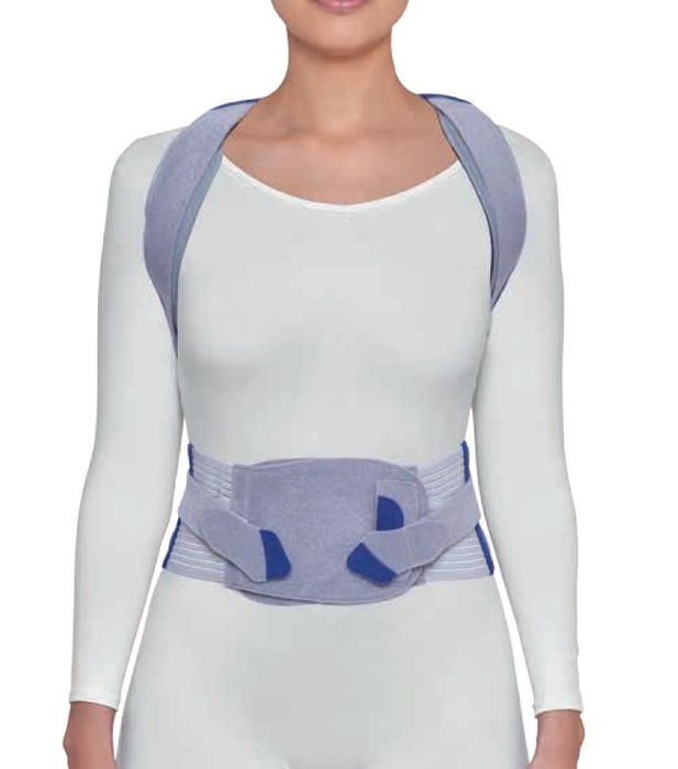 The OrthoPosture thoracolumbar support functions according to the 3-points of pressure principle to pull back the shoulders and improve poor posture or thoracic kyphosis. Constructed with a lightweight elastic lumbar belt and high-density polymer posterior thoracic support which connects to two shoulder straps, the OrthoPosture provides ultimate posture support to help the patient walk taller. Indications · Thoracic kyphosis/poor posture · Postoperative care · Acute and chronic thoracic back pain · Thoracic osteoporosis Product highlights · Constructed with high performance fabric · Posterior plastic is removable/heat mouldable · Adjustable straps pull back shoulders · Line of pull of shoulder straps is adjustable