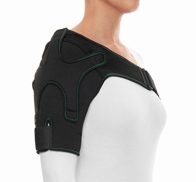 The OrthoShoulder Sleeve is indicated for the support, stabilisation and elevation of the shoulder. The unique three pronged Velcro strapping system provides extra shoulder elevation and gleno-humeral joint congruity when it is needed most post shoulder injury or to support degenerative shoulder conditions. The three pronged Velcro straps also provide adjustable levels of support to both the anterior and posterior capsules of the shoulder. Constructed of breathable airprene for comfortable use in warmer climates. Indications · Shoulder tendinopathy · Rotator cuff degeneration · Shoulder subluxation · Shoulder strains and sprains Product highlights · Unique adjustable three pronged Velcro straps · Silicone bicep grip to prevent migration · Breathable Airprene fabric · Adjustable bicep strap for patient comfort