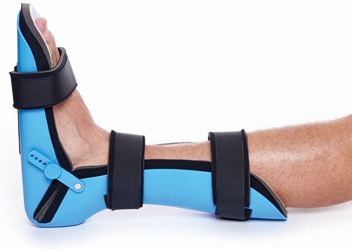 The OrthoICU AFO is an economical solution to preventing both plantar flexion contractures and heel pressure and potential ulceration for patients in the intensive care unit (ICU).  The splint design incorporates a void underneath the posterior aspect of the heel so there is minimal pressure underneath. The plantar/dorsi-flexion angle can be easily adjusted with the finger unlocking screw mechanisms, and the terry towelling liner can be removed and washed when necessary.
