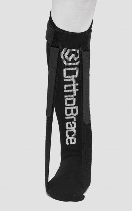 The OrthoPF Sock is designed to provide a comfortable and gentle stretch on the soft tissues surrounding the foot and ankle when sleeping to reduce the symptoms of several lower limb insertional tendinopathies. The foot is pulled into a slightly dorsi-flexed position when sleeping to prevent unwanted contracture of the plantar fascia and the achilles tendon overnight. This pull comes from a Velcro strap attached underneath the balls of the foot, which prevents unwanted extension of the big toe.