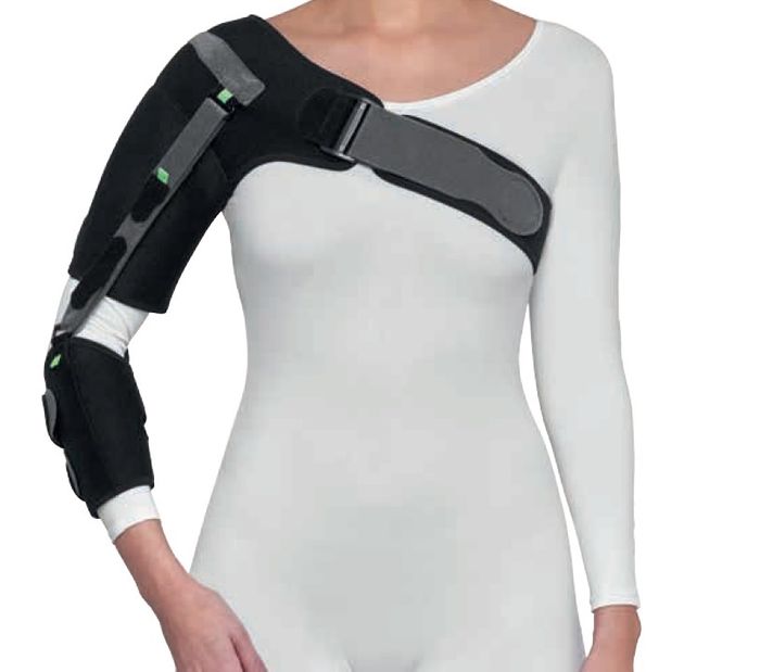 The OrthoHemi Shoulder is indicated for the support, stabilisation and elevation of the shoulder when weakness or paralysis of the upper limb(s) are involved. The circumferential forearm cuff which attaches to the patient adjustable colour coded strapping system, provides shoulder elevation and gleno-humeral joint congruity when it is needed most post stroke (CVA) or to support paralysis around the shoulder and arm caused by other neuromuscular conditions. Constructed of breathable airprene for comfortable use in warmer climates. Indications · Stroke (CVA) · Subluxation of the shoulder · Paralysis of the arm · Peripheral nerve weakness Product highlights · Breathable Airprene fabric · Easy colour coded strapping system · Low profile Velcro and straps · Adjustable bicep and forearm cuffs