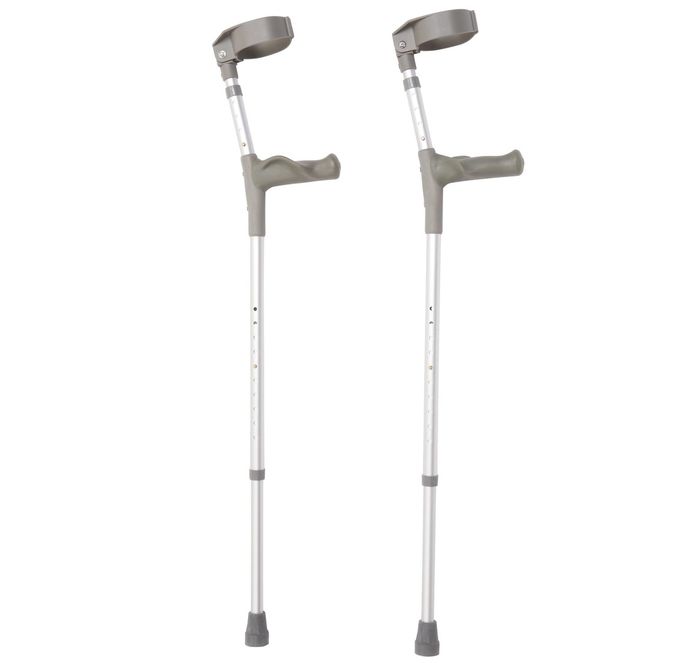 Ergonomically designed handles gives comfort to patients with a weak grip or to prevent painful hands. Made of lightweight anodized aluminium. Weight rated to 130kg per crutch. Universal sized. Push button height adjustability. Sold in pairs.