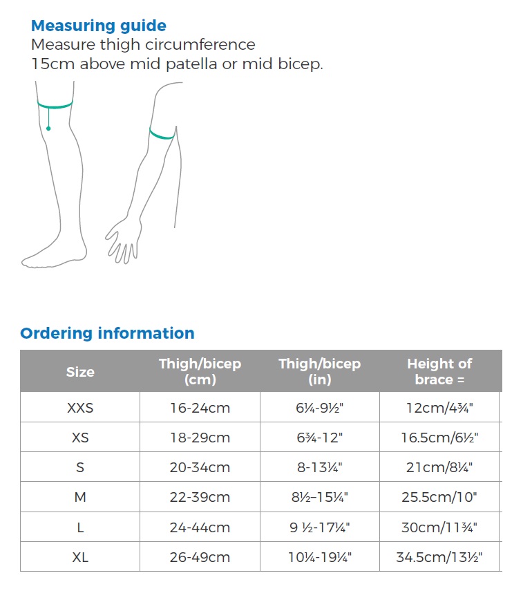 The OrthoKids Leg/Arm Immo is a single panel immobiliser that can be used to immobilise both the knees and elbows. Made from a soft, lightweight cotton material with plastic stays, the OrthoKids Leg/Arm Immo provides superb support and immobilisation following surgery or injury to both the knee and elbow. Can be used in infants to keep the elbow straight for IV use. Height of brace increases as product circumference increases. Available in 6 different sizes.